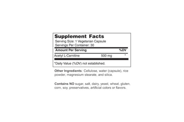 Acetyl-L-Carnitine is the acetylated form of l-carnitine. It supports healthy mitochondrial function and cell membrane stability. The acetyl group from acetyl-l-carnitine is responsible for production of acetylcholine, an important neurotransmitter for optimal mental functioning, memory and attention.